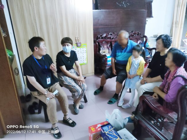 6月12日下午,在中兴镇禁毒办领导的支持下,“小芳工作室”负责人龚小芳联同禁毒社工、禁毒志愿者一同前往同伴小杨和小倪家中进行探望慰问,为他们的家属送去了牛奶、水果等慰问品,感谢他们为疫情防控所付出的热情和努力。