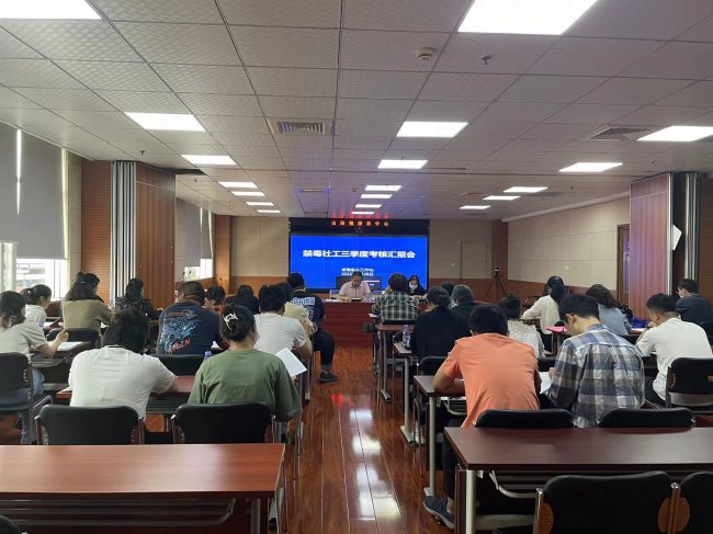 为建立健全科学的考核激励机制,规范禁毒社工管理,9月28日下午,金山工作站组织召开2022年禁毒社工第三季度考核汇报会。自强金山工作站站长李文雄主持会议,区委政法委禁毒室主任徐蕾参加会议。