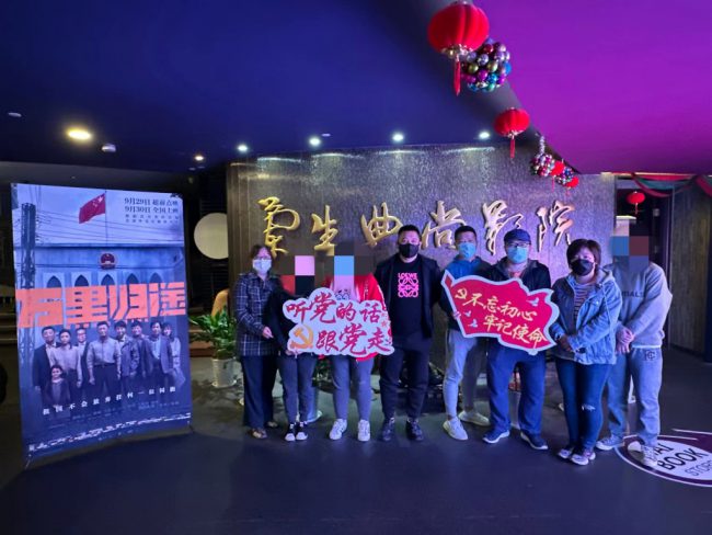 10月12日,半淞园路街道禁毒社工组在街道平安办的大力支持下,组织本街道的禁毒志愿者和戒毒康复人员共计8人在兰生典尚影院观看爱国题材电影《万里归途》。由于在疫情期间,部分志愿者和戒毒康复人员都临时无法前来参加。整个观影过程,参与者保持全程佩戴口罩。
