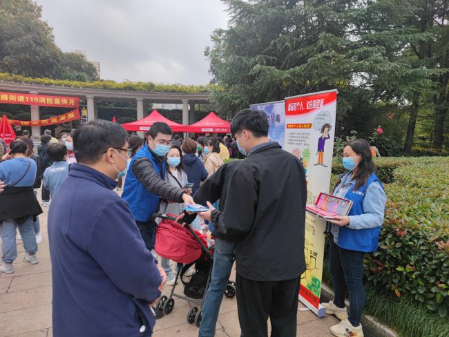 2022年11月4日,在虹口区广中路街道平安办组织带领下自强虹口广中路街道的禁毒社工和禁毒志愿者在花园坊党建中心的协助下开展了以“禁毒反诈齐宣传、拒毒防诈入人心”为主题的禁毒反诈宣传活动。
