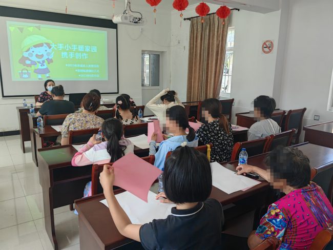 为提高药物滥用人员家庭的亲子沟通能力,近日陈家镇禁毒社工在辖区禁毒办的支持下织开展了 “携手创作”未成年子女关爱活动。