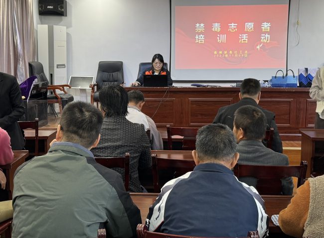 2023年11月9日,在庙镇活动中心,庙镇禁毒社工成功举办了一次重要的禁毒志愿者培训活动,这次活动汇聚了庙镇全体禁毒志愿者,为我们的庙镇片区注入了一股强大的禁毒正能量。