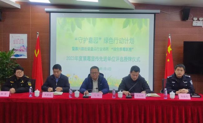 1月12日下午,虹口区嘉兴路街道牵头嘉兴路派出所、街道市场监管所、自强虹口嘉兴路社工点在嘉兴路社区党建服务中心举行“守护嘉园”——绿色行动计划暨嘉兴路街道重点行业场所“绿色禁毒联盟”2023年度禁毒宣传先进单位评选授牌仪式。