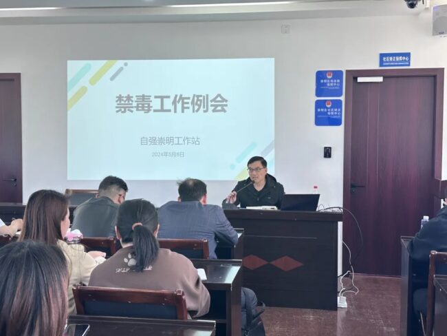 为回顾、总结前阶段工作,找出工作中存在的问题和漏洞,推进、部署下阶段重点工作并对业务工作开展培训,自强崇明工作站于5月8日下午组织全体禁毒社工召开工作会议。