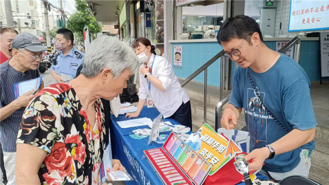 2025年7月24日,长宁区华阳路街道禁毒社工与禁毒志愿者在美天三角场菜市场门口人开展一场独具特色的禁毒宣传活动,将识毒、防毒、拒毒的关键知识送到居民“菜篮子”旁。