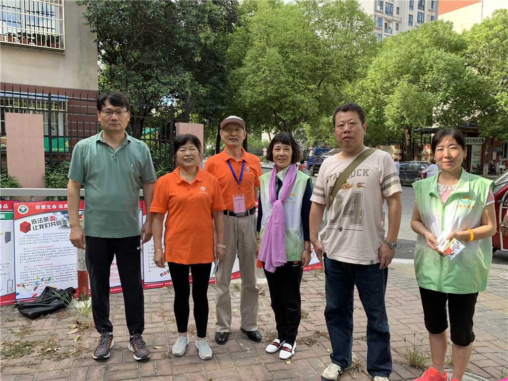 2019年9月18日上午,张庙禁毒社工、禁毒专职干部、禁毒志愿者在泗塘公园白玉兰广场开展了主题为“铭记历史 警钟长鸣 珍爱和平 远离毒品”的禁毒宣传活动。