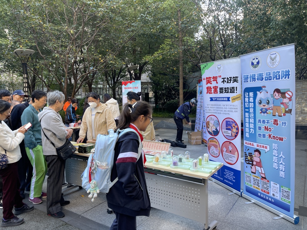 为了更好的贯彻禁毒宣传的全面深入和持续开展,将禁毒知识更多、更广和更贴近的传播到广大的居民群众中去,2024年11月7日下午,在长宁区江苏路街道平安办组织下到了嘉宁国际广场开展的“11.9”消防安全宣传月启动活动现场,开展了一场消防与禁毒相结合的宣传活动。