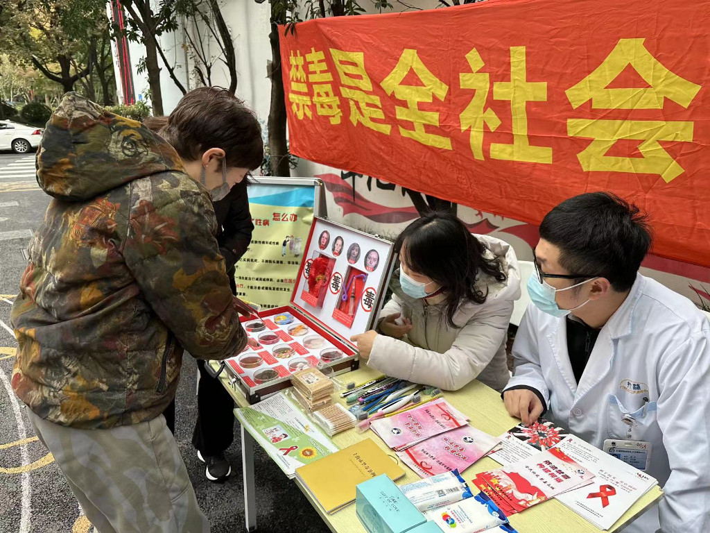 12月1日是世界艾滋病日,自强黄浦工作站打浦桥社工点的禁毒社工和禁毒志愿者联合社区卫生服务中心在社区医院开展了一次禁毒防艾宣传活动。