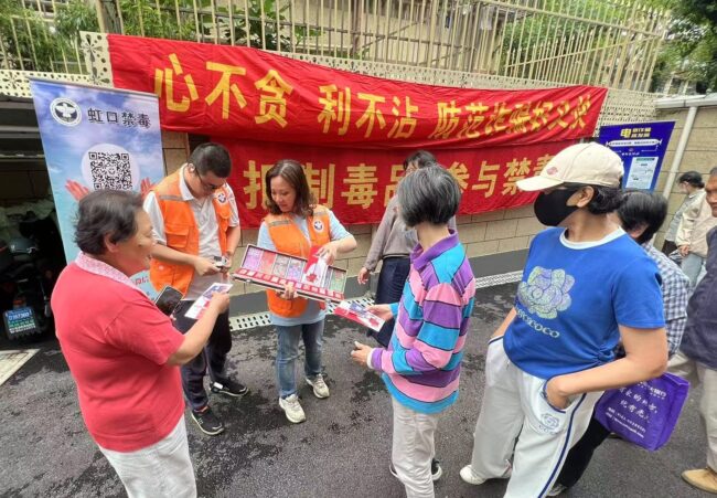 在6.26国际禁毒日来临之际,自强虹口曲阳路社工点积极响应上级号召,充分利用明星效应,通过在各居委会张贴胡歌禁毒海报、播放禁毒公益视频等形式,推进社区禁毒宣传教育全覆盖。
