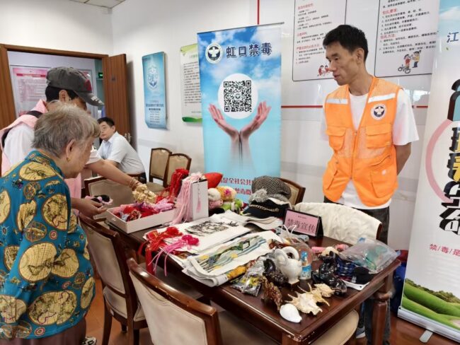 6月10日上午,虹口禁毒同伴工作室在江湾镇第五市民驿站开展了一场爱心义卖及作品展示活动,义卖活动所有款项均投向北外滩街道的阳光之家,为那里的残障儿童送上温暖。