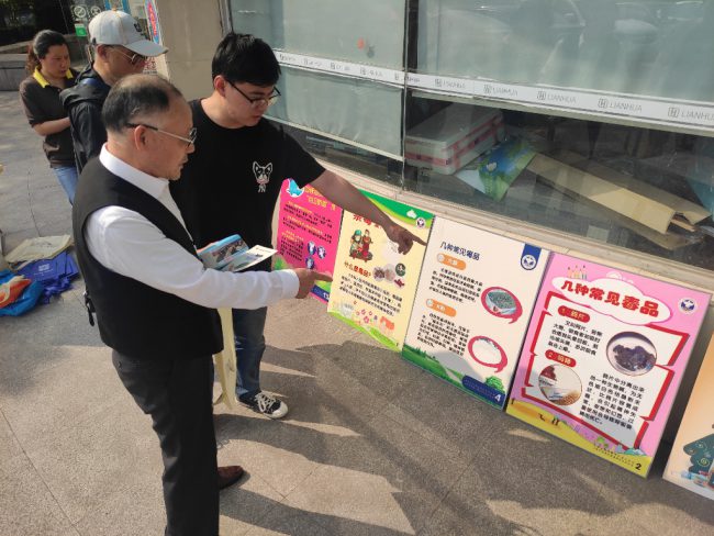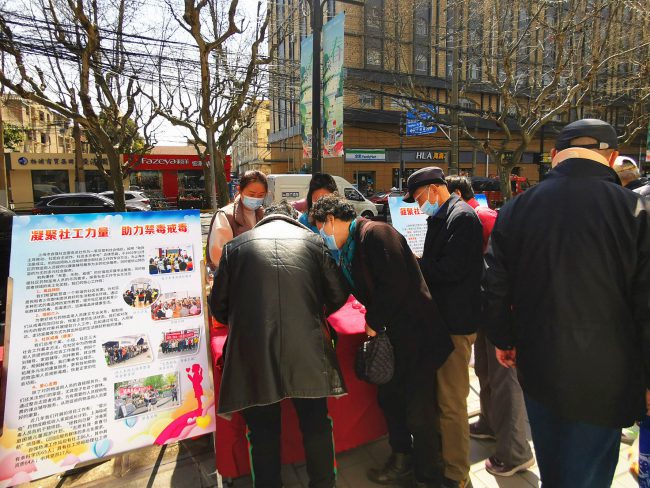 2021年3月31日上午,自强杨浦四平路街道禁毒社工协助街道平安办工作人员在苏家屯路开展了禁毒与动员居民接种新冠疫苗联合宣传,向广大居民传递禁毒知识与禁毒理念,激励居民们对自己生命健康高度负责的精神,筑起预防毒品与预防新冠病毒的防“毒”双屏障。