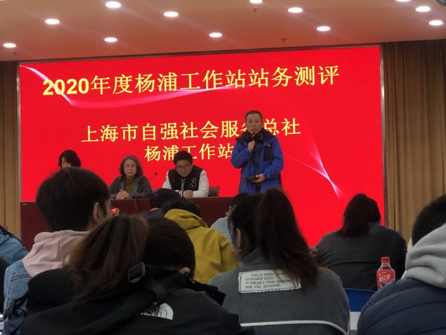 2020年12月24日上午,由市自强总社副总干事王雷、督导主任曹霞、人事干事陈志超以及兄弟区工作站示范岗社工组成的督查评估小组,来到杨浦工作站四平路社工点开展2020年度督查评估工作。