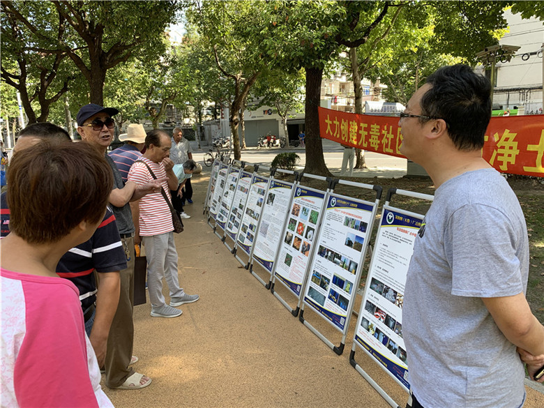 为了弘扬革命先烈奋战的精神,牢记新时代使命感和责任感,2019年9月18日上午,张庙禁毒社工、禁毒专职干部、禁毒志愿者在泗塘公园白玉兰广场开展了主题为“铭记历史 警钟长鸣 珍爱和平 远离毒品”的禁毒宣传活动。
