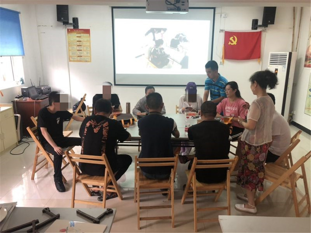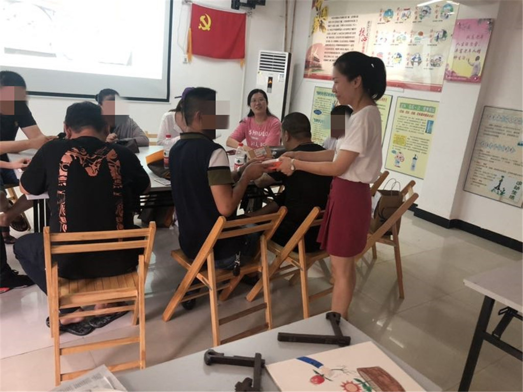 9月6日下午,宝山工作站杨行社工点禁毒社工在杨泰二村二居委活动室开展“指尖上的艺术”小组第六节活动,八名组员不顾倾盆大雨悉数到场。