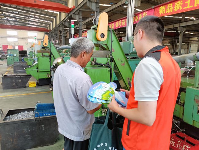 为进一步扩大禁毒宣传教育覆盖面,有效提升辖区内企业员工防毒、识毒、拒毒能力,8月7日、9日,新河镇、陈家镇禁毒社工在辖区禁毒办的支持下,组织志愿者冒着高温,分别来到永泰零部件有限公司、上海铜材编织铜材厂进行宣传活动。