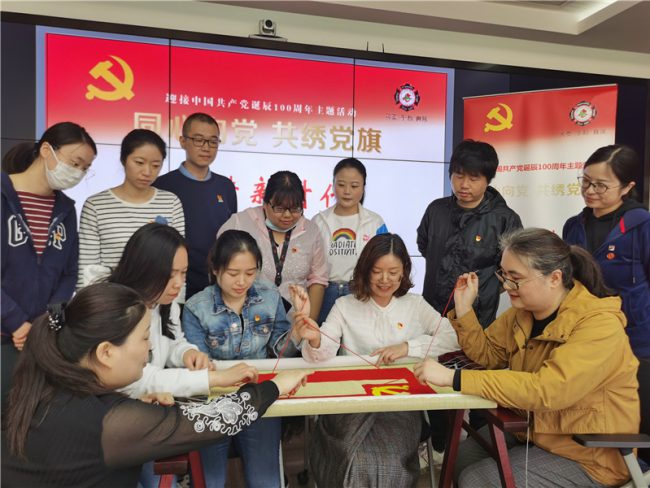 自强长宁工作站在区戒毒康复指导中心开展党旗接力绣暨“同心向党 共绣党旗”主题党日活动。
