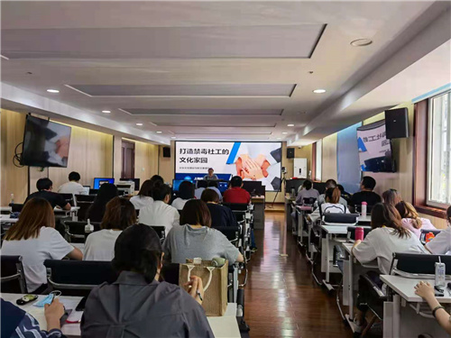 为了提升社工的职业素质和心理建设,5月25日,嘉定工作站全体社工在司法行政之家1楼多功能活动厅召开系列培训会,主题分别为“企业文化建设与职工素质培养”及“塑造阳光心态,迈向职业成功”,培训由嘉华进修学院院长黄进主持授课。