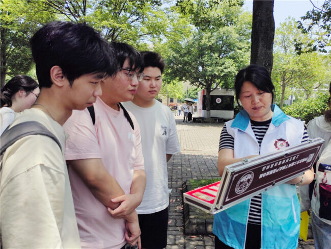 当代新型毒品“伪装术”升级,好奇心旺盛的大学生正面临潜在威胁!为守护校园净土,上海市禁毒志愿者协会青浦代表处、自强青浦工作站联合上海政法学院社协禁毒小组,于2025年6月3日中午,在校文化广场开展「六月禁毒奇妙物语」主题活动,邀你在趣味互动中解锁识毒防毒新技能,共有约200名学生参与。