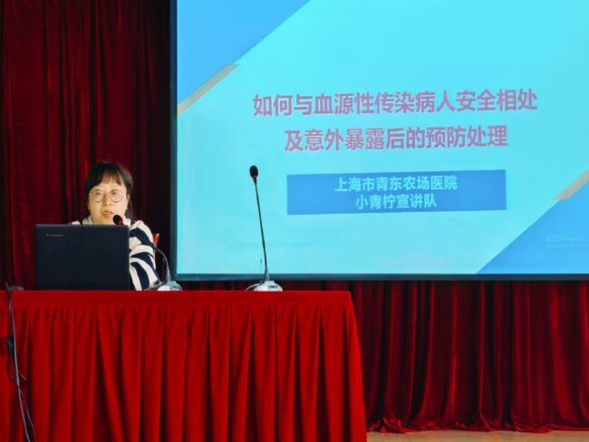 2025年4月29日下午,自强杨浦工作站在怀德路399号3楼会议室面向全体社工开展了以认识和了解血源性传染病为主题的专题培训。本次培训邀请到青东农场医院护理部主管护师曹黄阳进行主讲,共有86名社工参加。