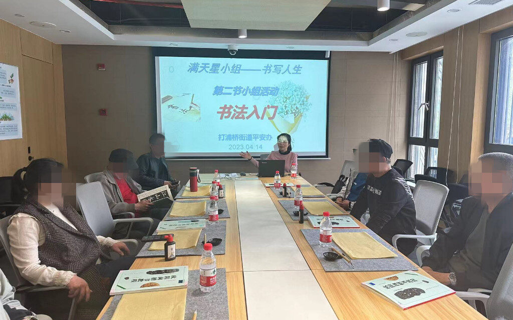 详情4月14日下午,黄浦工作站打浦桥街道禁毒社工组在综治中心会议室开展了“满天星小组-书写人生”的第二节活动。本次活动的主题为“书法入门”,主要目标为让组员了解毛笔书写的基本知识,静下心来感受笔墨之香,共6名组员参加。