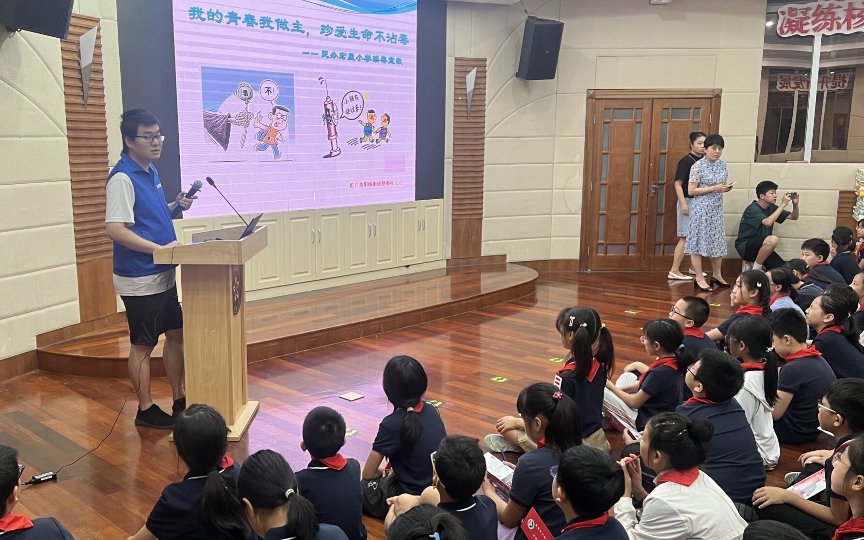 详情9月12日下午,自强虹口曲阳路社工点禁毒社工会同禁毒志愿者联合虹口检察院、高境强制隔离戒毒所民警一同来到民办宏星小学,开展了一场主题为“我的青春我做主 珍爱生命不沾毒”的校园青少年毒品预防教育宣传活动。