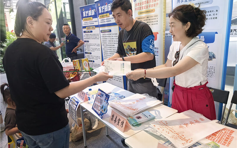 为进一步浓厚禁毒宣传氛围,切实提升全民识毒、防毒、拒毒意识与抵制能力,2025年7月9日至10日,长宁区新泾镇禁毒社工与志愿者队伍在辖区西郊百联购物商场新开业的“品上生活”超市前,联合开展了一场禁毒普法综合宣传活动。