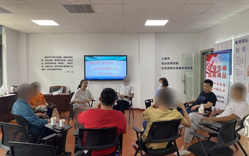 2023年7月4日下午,自强杨浦工作站长海路社工点与殷行社工点禁毒社工联合在长海路街道黑山居委活动室开展了“健康不DU行” 第六次小组活动——“向健康出发”。当天有9名组员、2名复旦实习生、4名禁毒社工和1名总督导参加此次活动。