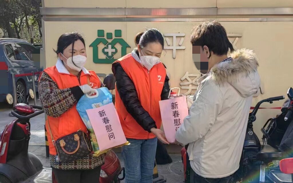 2023年春节来临之际,为落实对困难家庭服务对象的帮扶帮教工作,给予真切关心和节日问候,自强总社杨浦工作站四平社工点禁毒社工和女子戒毒所六大队余警官等在春节前为辖区内的贫困家庭重疾服务对象送上粮油大礼包,传递关怀和温暖,并提前送上新年的祝福。