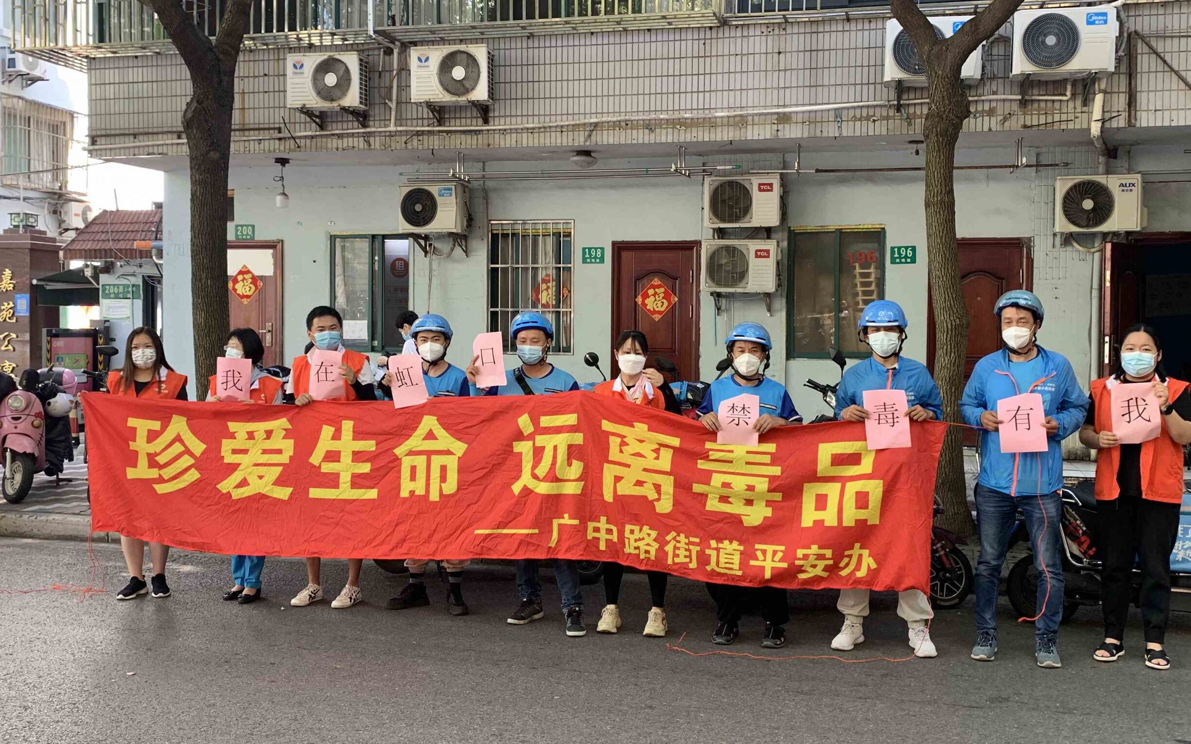 详情2022年6月22日,虹口区广中路街道平安办联同自强虹口工作站广中路禁毒社工点在同鸣路“饿了么”运营中心组织开展以“喜迎二十大,骑手助力,禁毒作贡献”为主题的禁毒宣传活动,积极发动外卖小哥参与禁毒预防宣传。