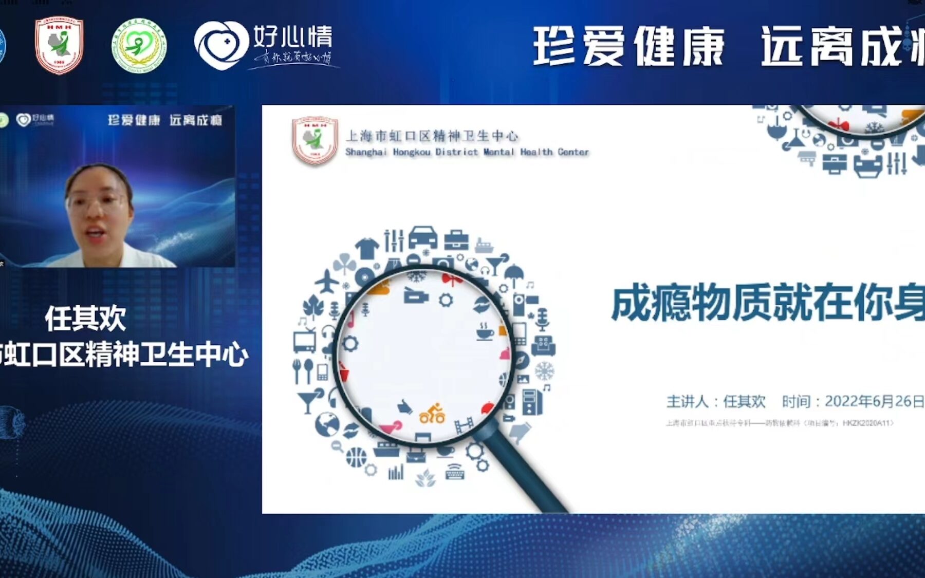 详情2022年6月26日上午9:00,按照市、区疫情防控要求,结合工作实际,精心策划,组织开展了一场名为“成瘾物质在身边”的线上禁毒讲座,由美沙酮门诊主任任其欢医师主讲。