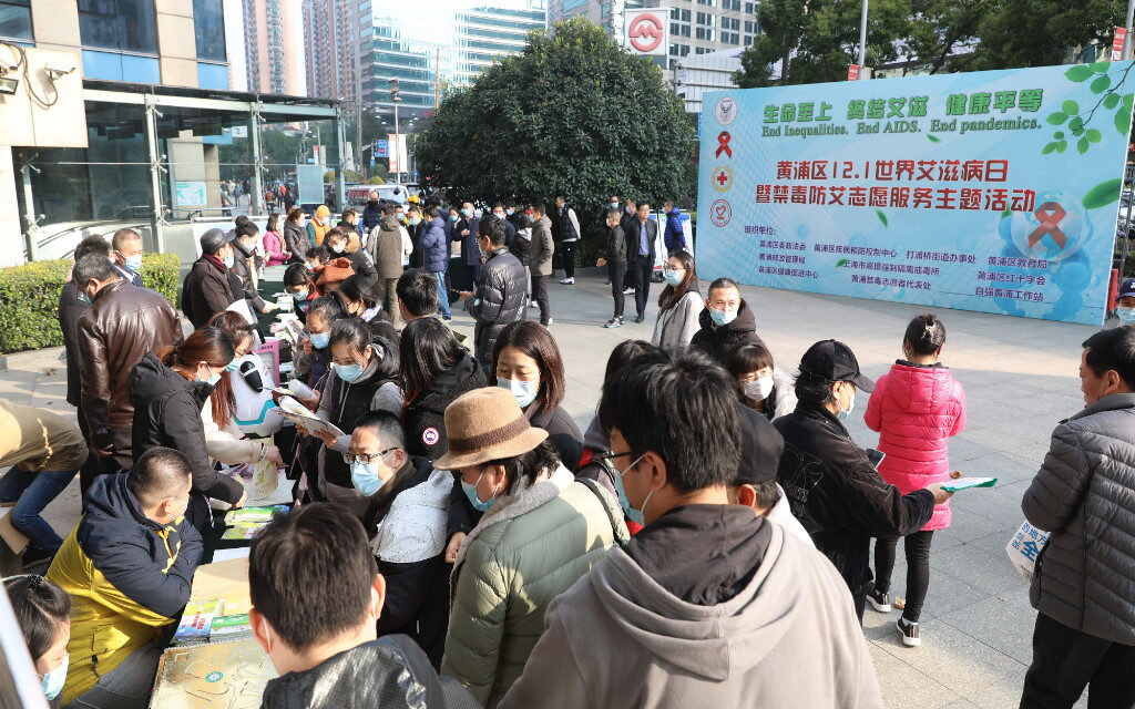在第34个“世界艾滋病日”来临之际,11月30日,由黄浦区委政法委、区疾病预防控制中心、打浦桥街道办事处、区教育局、黄浦邮政管理局、市高境强制隔离戒毒所、区红十字会、区健康促进中心、区禁毒志愿者协会和自强黄浦工作站等单位联合主办的“生命至上,终结艾滋,健康平等”—黄浦区12.1世界艾滋病日暨禁毒防艾志愿服务主题活动在打浦桥日月光广场举行。
