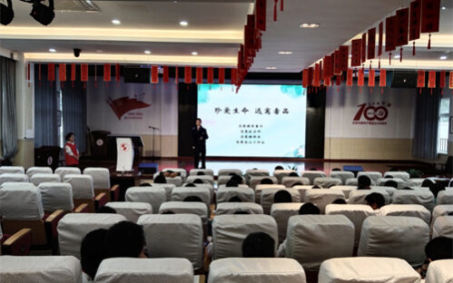 2021年11月5日下午,受上海市延安实验初级中学邀请,长宁区北新泾街道禁毒社工和禁毒志愿者一行来到延安实验初中道德讲堂。