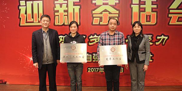 2017年1月20日下午,市自强总社在汉中路188号4楼科技艺术活动馆举行“金鸡贺岁,同心聚力”—2017迎新茶话会。市综治办基层指导处处长朱黎明、市民政局职业社工处处长张静为自强首批社工工作室—徐汇工作站“康健艺术工作室”、青浦工作站”夏苹工作室”授牌。