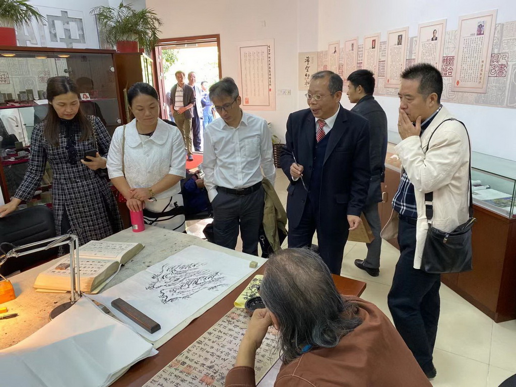 2019年10月16日上午,奉贤区委政法委副书记、区禁毒办副主任陆冬杰带领奉贤区禁毒办下属各街镇的禁毒相关负责人在徐汇区禁毒室主任许海燕,康健街道平安办主任罗民和街道禁毒干部的陪同下,来到康健希望印社(艺术工作室)调研交流。