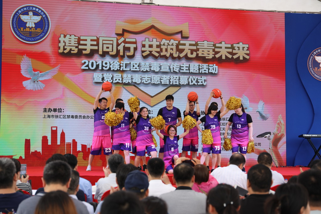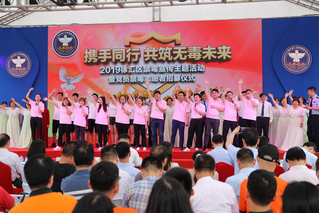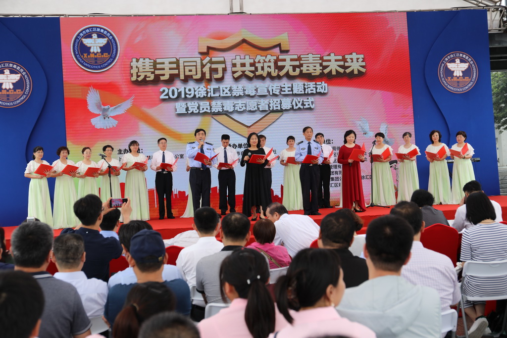 2019年6月18日下午,由徐汇区禁毒委员会办公室主办,上海市自强社会服务总社和徐汇区斜土街道办事处承办的“携手同行,共筑无毒未来”–2019年徐汇区禁毒宣传主题活动暨党员禁毒志愿者招募仪式在徐汇滨江举行。参加当天活动的领导有:中共徐汇区委副书记、区委政法委书记、区禁毒委主任钟晓咏,徐汇区政协副主席周秀芬,中共徐汇区委政法委副书记、区禁毒办主任张喆,市禁毒办毒品预防处副处长郑雨清,市自强社会服务总社总干事厉济民,市禁毒志愿者协会秘书长吉宝荣。